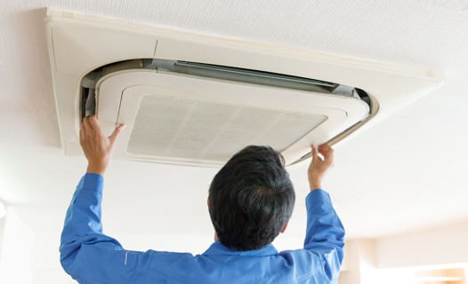 オフィスや商業施設などの、広い場所における空調管理のために利用されている業務用エアコン。